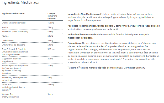 Contribue à soutenir la fonction hépatique et aide l'organisme à métaboliser les graisses.