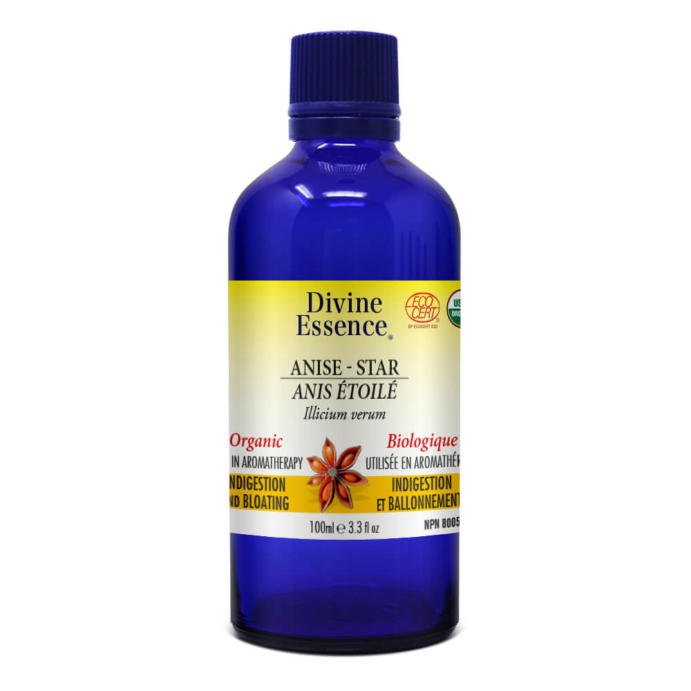 - L'huile essentielle d'Anis étoilé est utilisée en aromathérapie comme antispasmodique pour soulager coliques, indigestions, ballonnements et crampes abdominales.