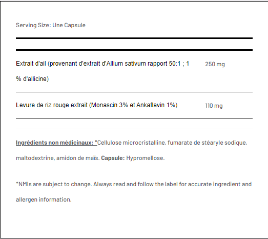 La levure rouge de riz + ail d’AOR exploite la relation complémentaire des deux ingrédients pour fournir des résultats supérieurs. L’effet principal de la levure de riz rouge (RYR) est de fournir des antioxydants qui empêchent l’oxydation du cholestérol qui peut conduire à la formation de plaques. Le LDL oxydé est particulièrement atherogenic et contribue à la formation de plaque dans les artères. Les antioxydants soutiennent les vaisseaux sanguins sains en maintenant le cholestérol dans son état réduit normal. RYR fonctionne en synergie avec l’ail pour dilater les vaisseaux sanguins afin de permettre un flux sanguin lisse pour réduire les graisses dans le sang qui se déposent dans les vaisseaux sanguins.
